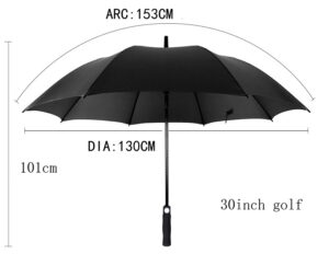 Durable and stylish golf umbrella made with pongee fabric, fiberglass shaft and ribs, featuring a semi-automatic opening mechanism.